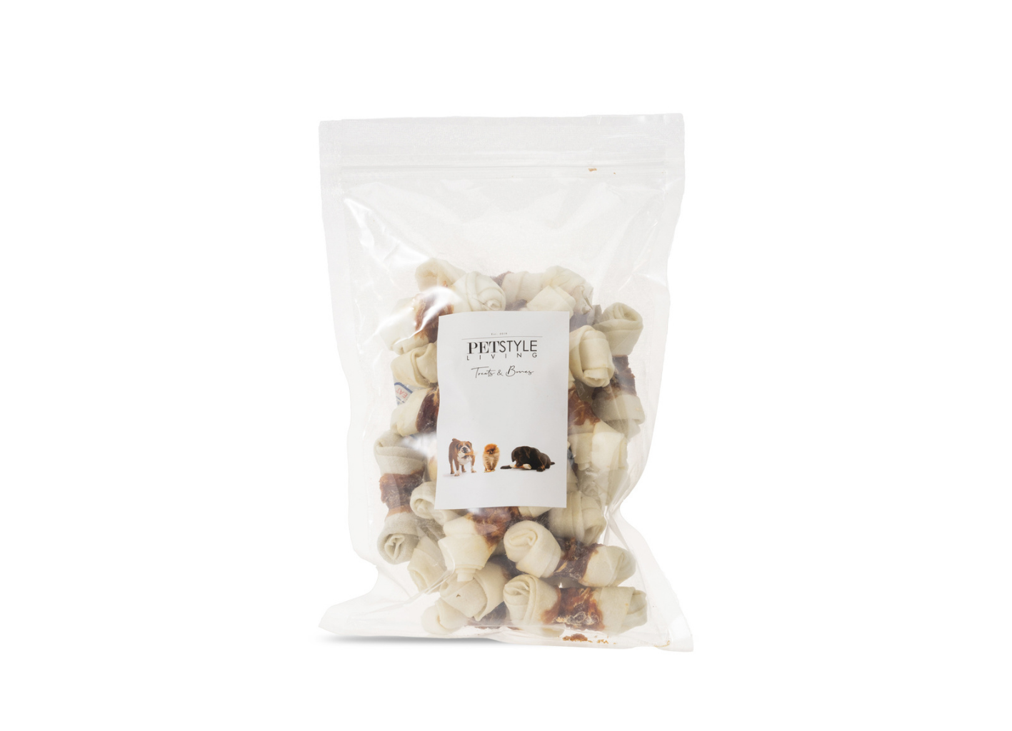 Our Knotted Beef Hide Bones are made from 100% natural beef hide and generously wrapped with savory duck.